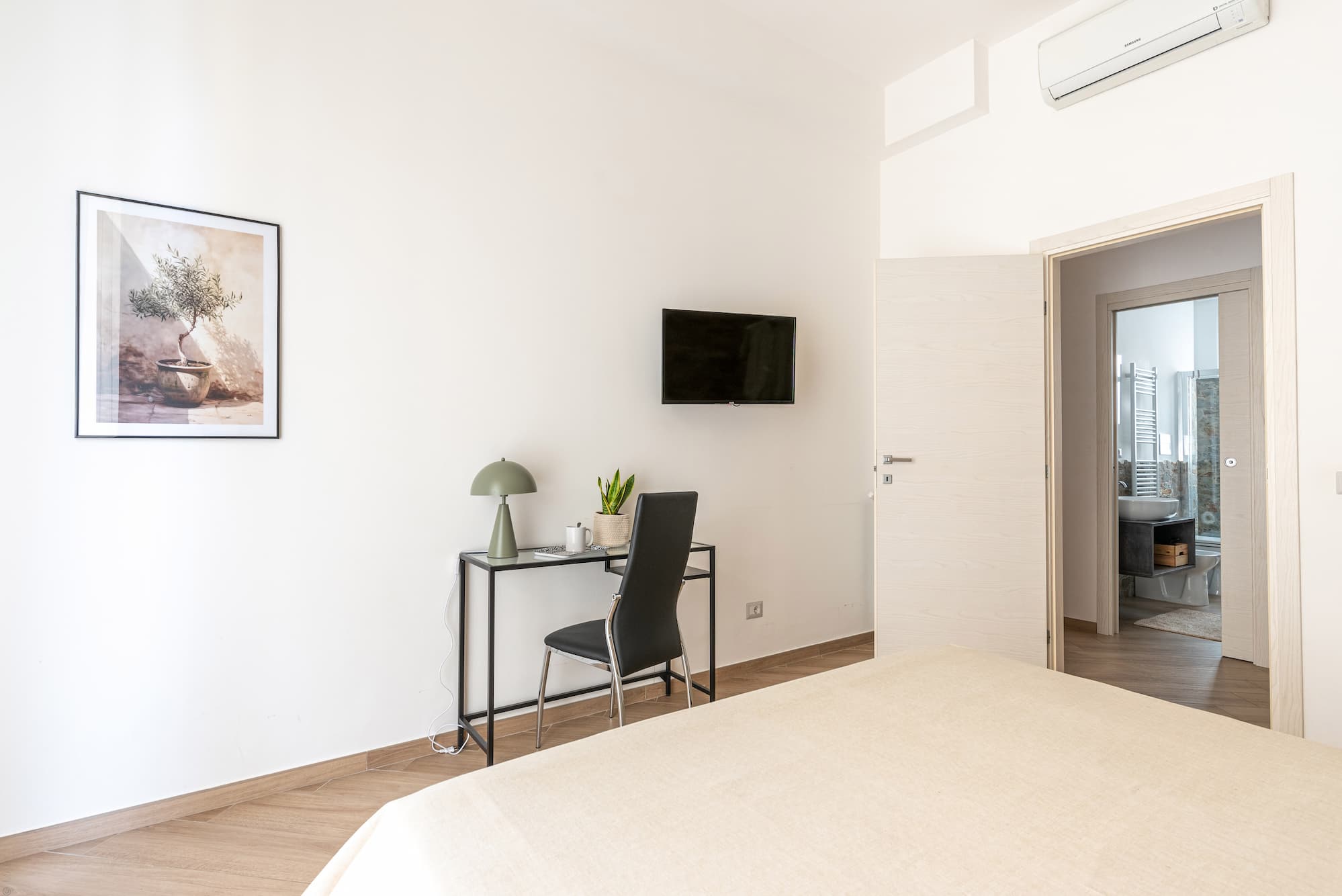 Luminoso e dotato di ogni comfort, l'appartamento si compone di tre camere da letto con letto matrimoniale, una cucina attrezzata, un soggiorno finemente arredato e due comodi bagni con doccia.