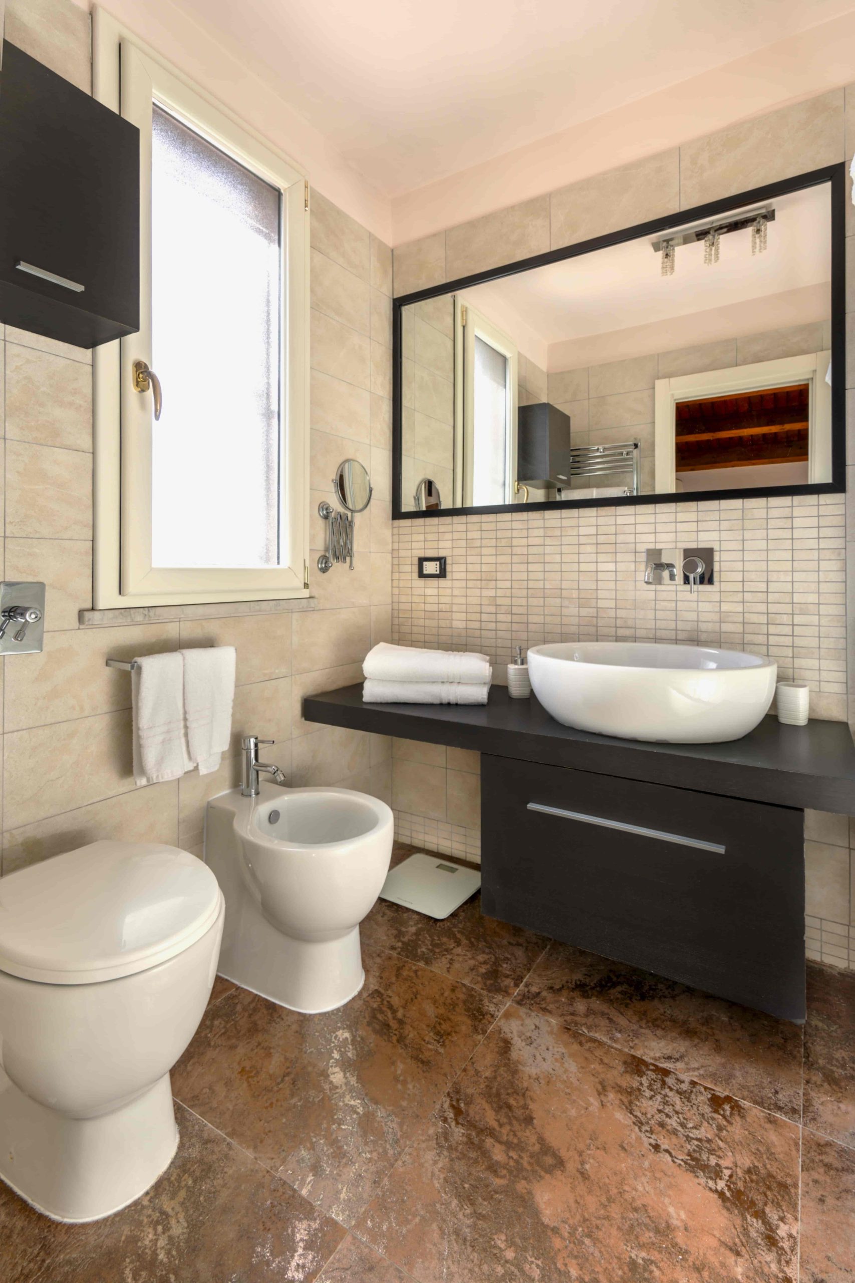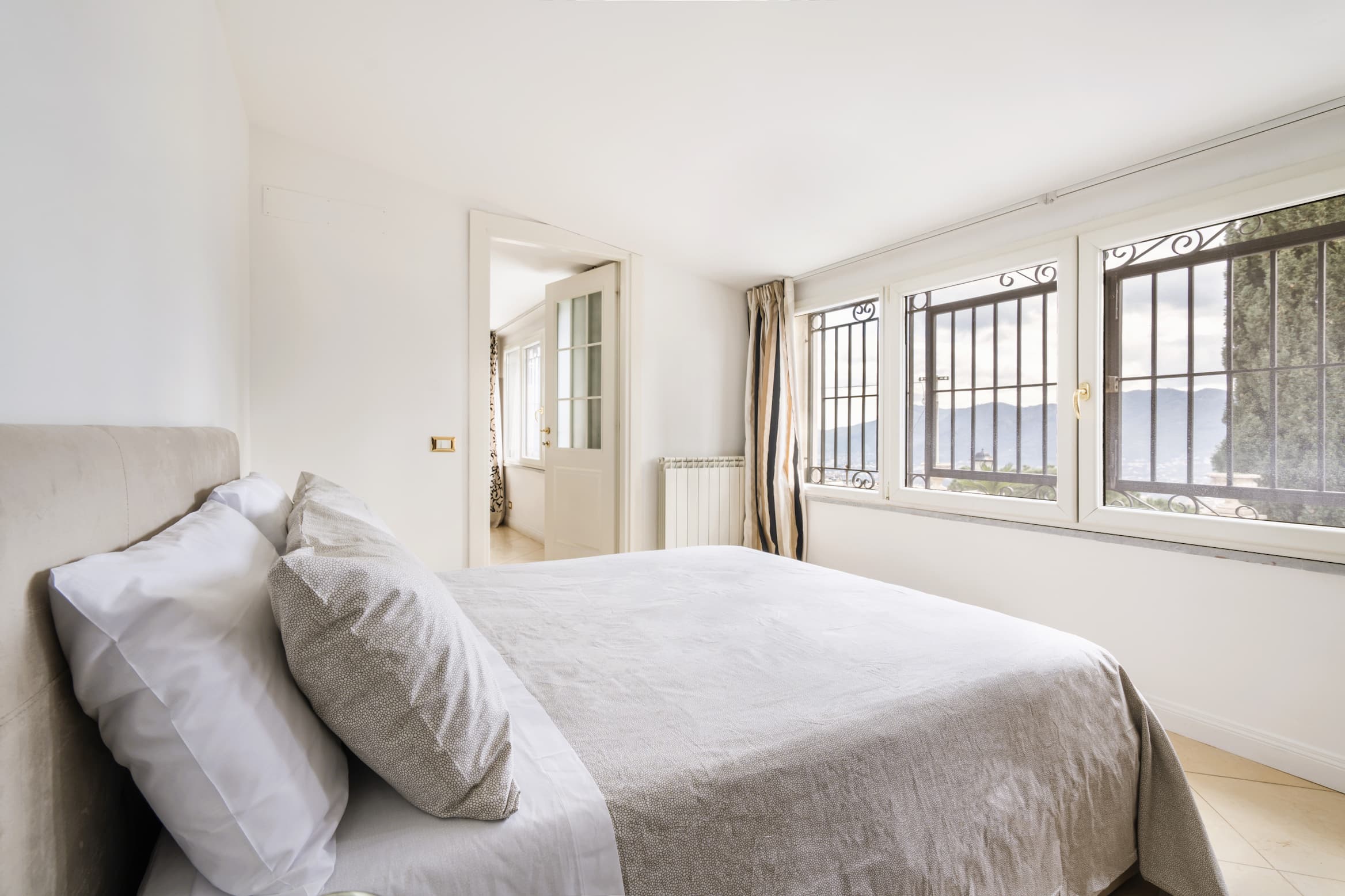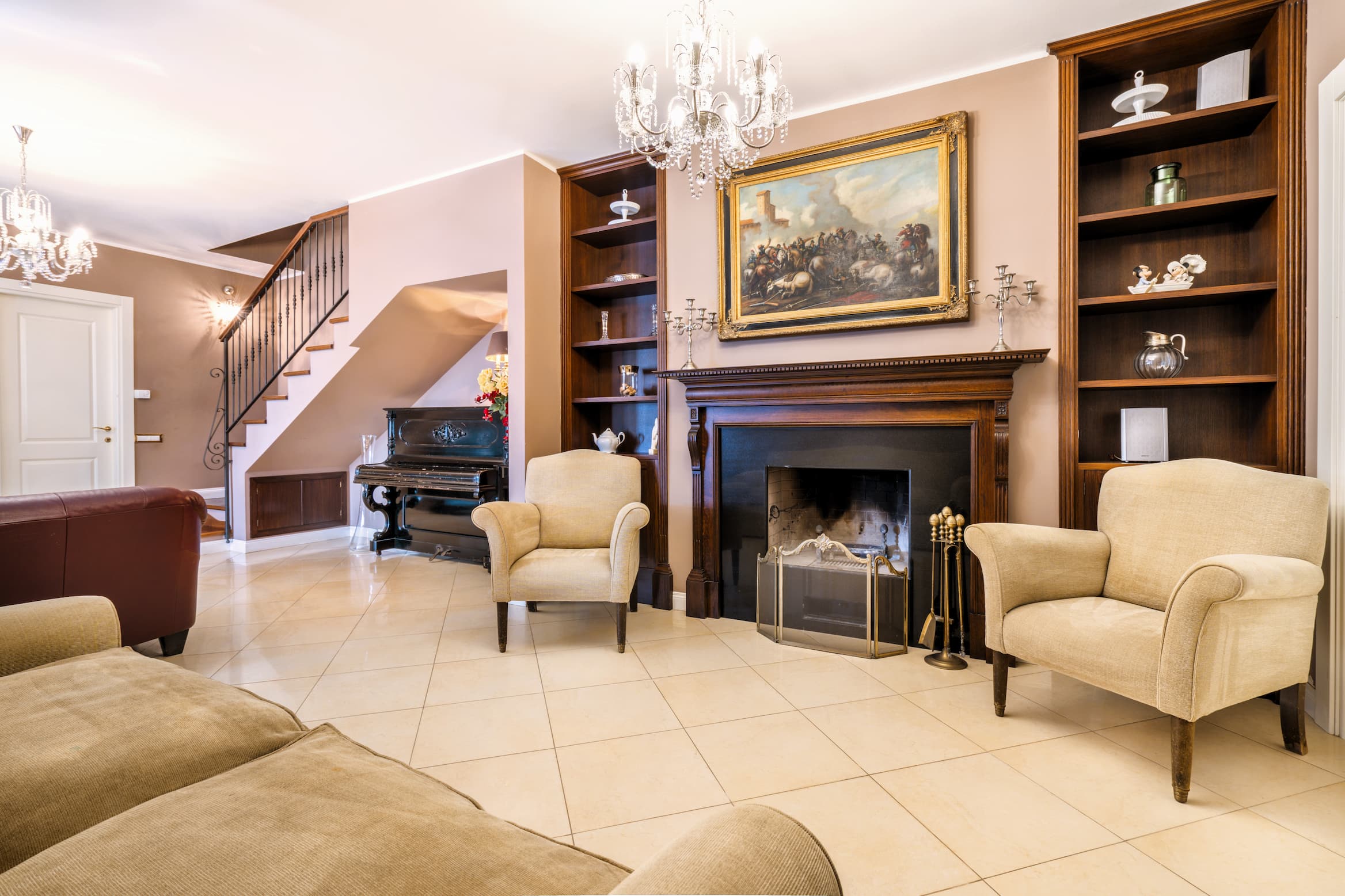The interiors, bright and meticulously designed, blend historic elegance with modern comfort, featuring restored antique furniture and high-quality materials.